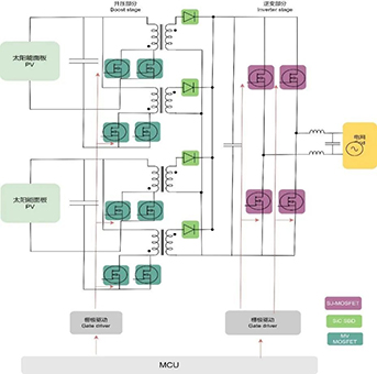 不同结构逆变器有不同电路框架,图3为微型逆变器拓扑架构图。功率器件作为整个电路系统的关键器件,金额占比较高。